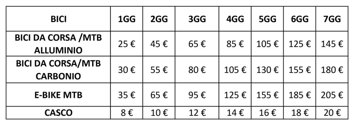 Se hai bisogno di una bicicletta per qualche ora o per più giorni, contattaci per verificare la disponibilità e trovare la soluzione più adatta a te.